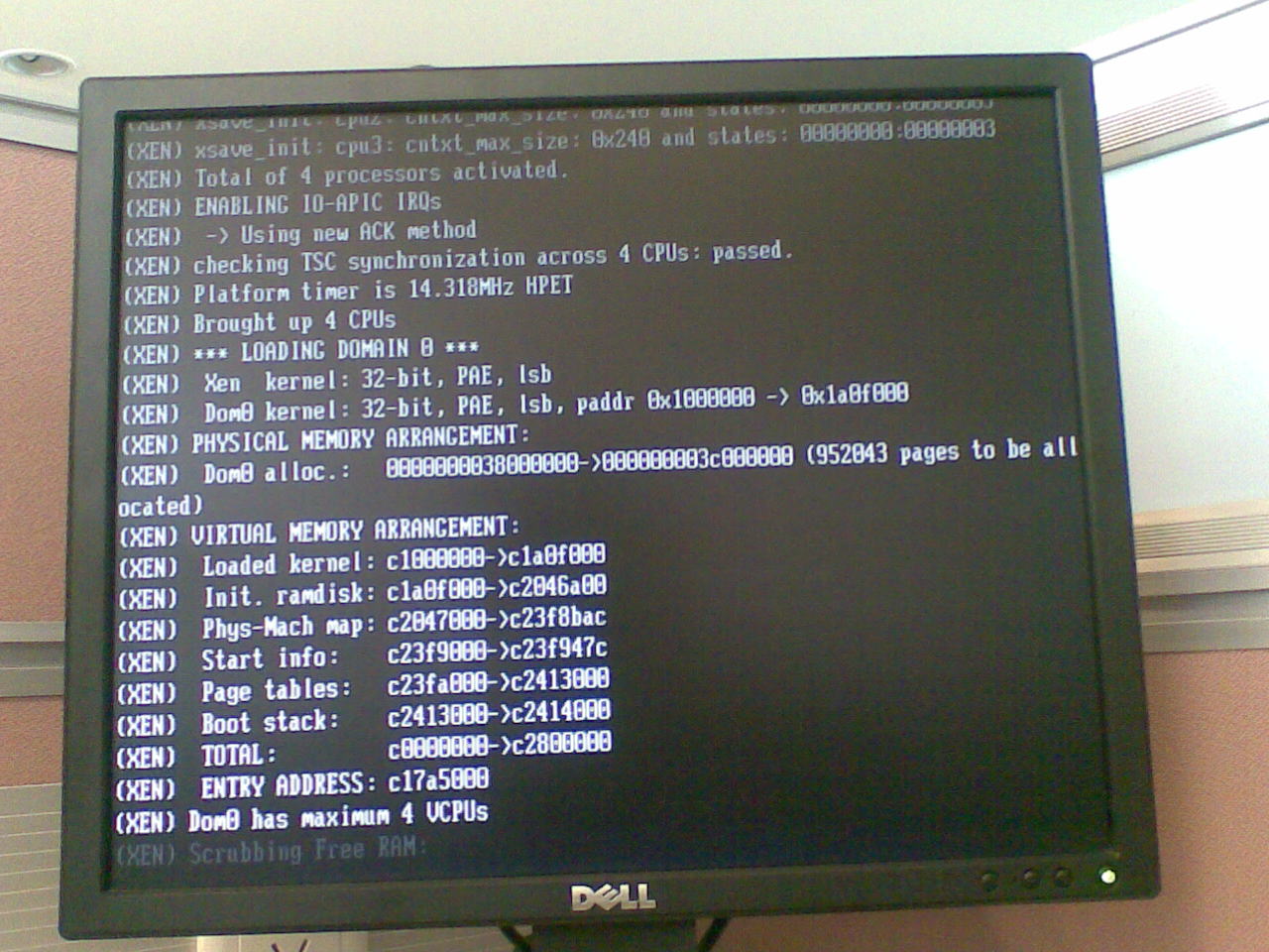 >>>> today. I rebooted the Xen. The screen just stopped at "Scrubbing Free
