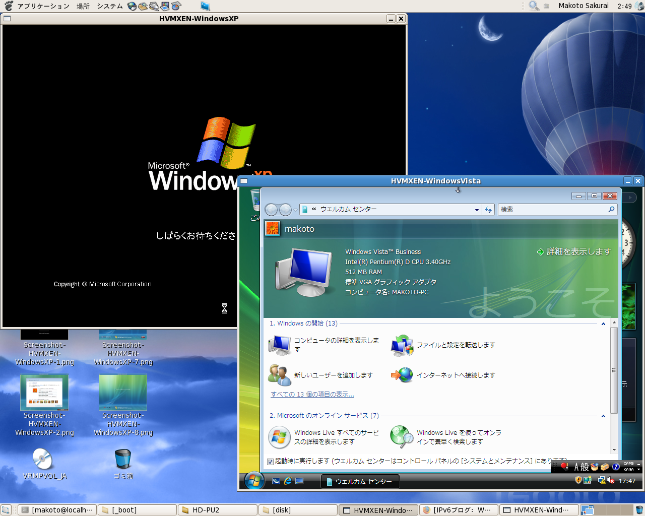 up the Windows Vista Business of Japanese version on the Fedora Core 7 test 3,