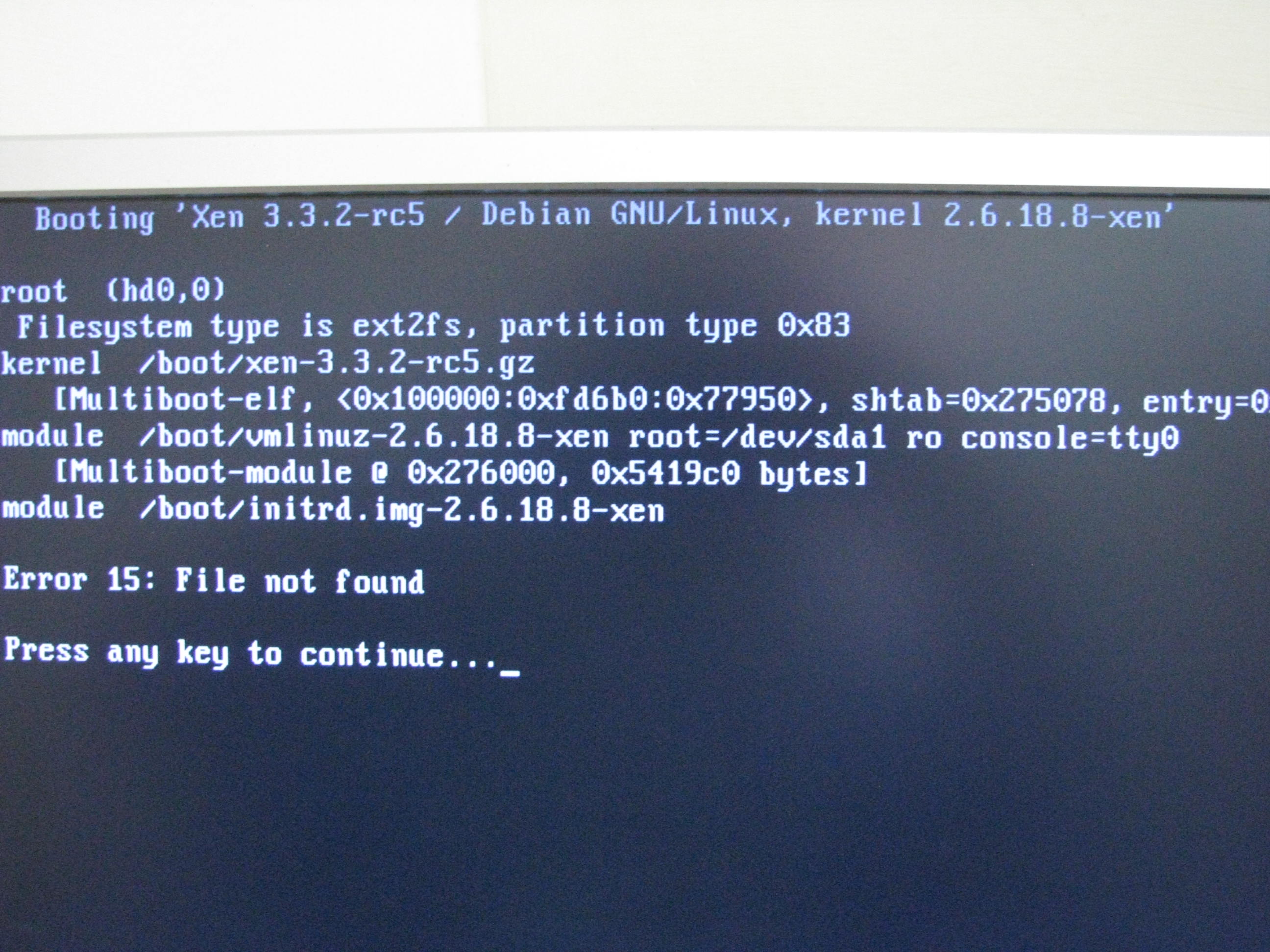 [Date Prev][Date Next][Thread Prev][Thread Next][Date Index][Thread Index] [Xen-users] please help - Xen Booting error